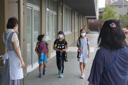 ちょっと怪しい雲行きのお天気ですが、子どもたちは今日も元気に登校してきてくれました。