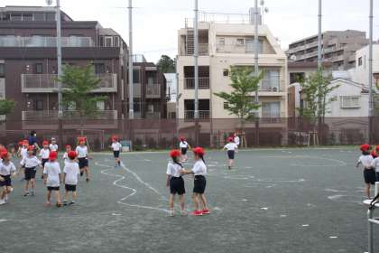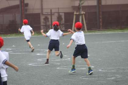 早朝、先生ががんばって引いたラインを使って、忍者のように駆け回ります。