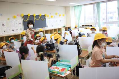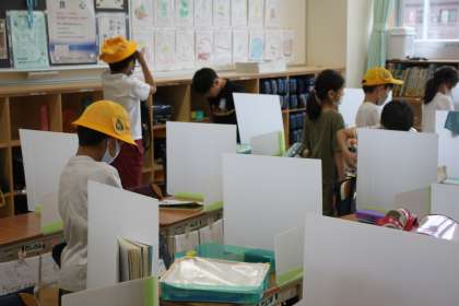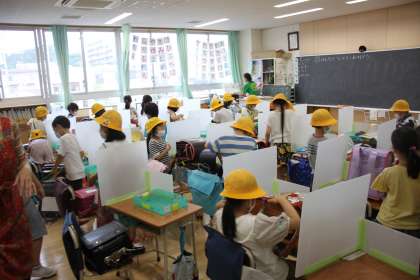 1年生が下校の準備をしています。