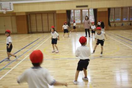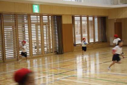 広い体育館を走り回る1年生。