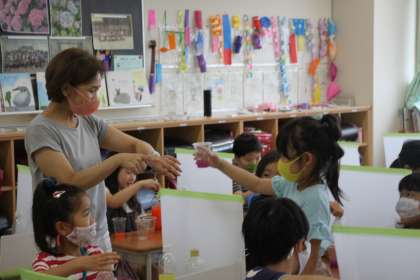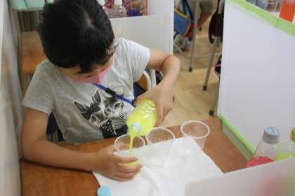 2年生が図工の時間に、色水を作りました。