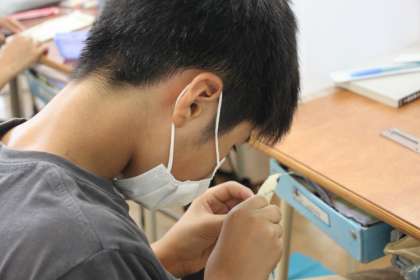 5年生が家庭科の学習で、布マスクをつくっています。