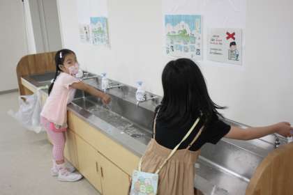 登校した後は、まず手洗い、休み時間の後もすぐ手洗い。