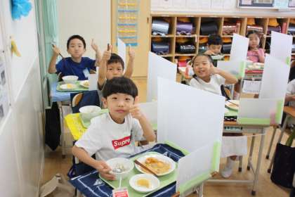 1年生たちはお箸を手に、しっかりと食事をしました。