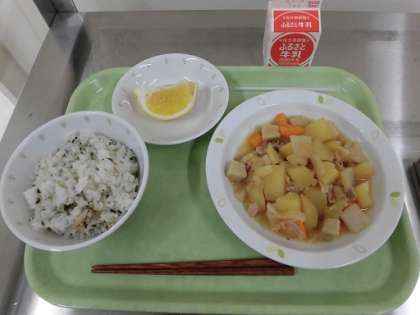 わかめごはん 肉じゃがうま煮 河内晩柑 牛乳