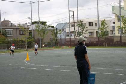 クラス全員でリレーをしますが、新型コロナウイルス対策のため、非接触で行います。