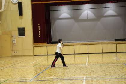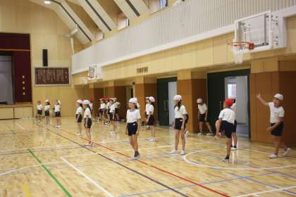 ストレッチをした後は、先生の合図でスタートダッシュ!