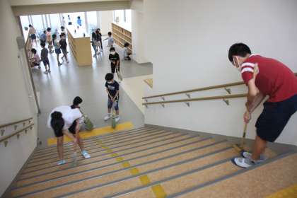 2年生以上の学年では、教室以外のところに出張して掃除をします。
