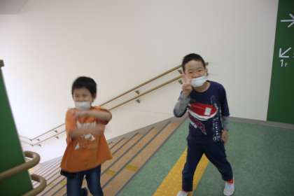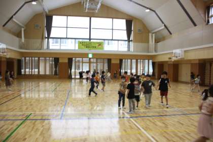 かわいい1年生は喜び勇んで体育館に向かいます。
