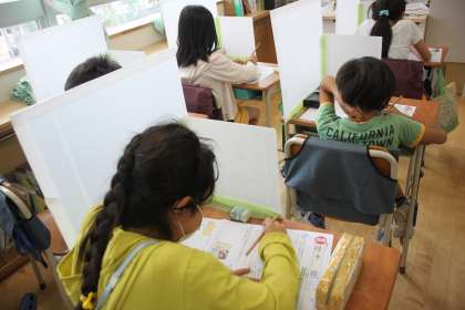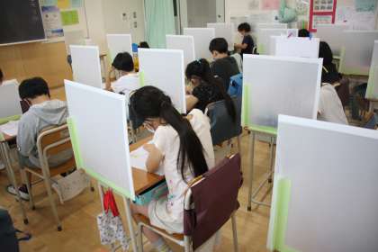 集中して聞き、メモをしたことを基にしてテストに挑みます。