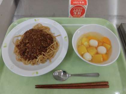 ジャージャーめん フルーツ白玉 牛乳