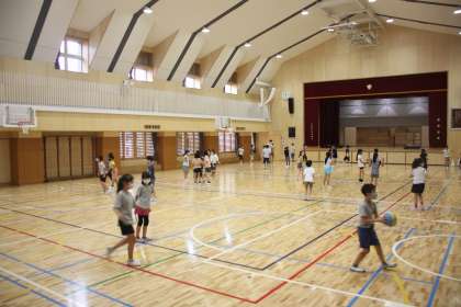 エアコン完備、大きな窓により妻面フルオープンになる若小新体育館!