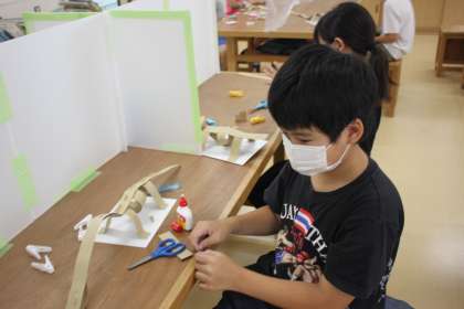 今日はボール紙とボンドでつくる「ペーパーザウルス」に挑戦です。