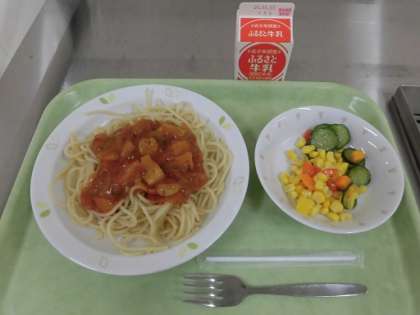 スパゲッティ地中海ソース トロピカルサラダ 牛乳