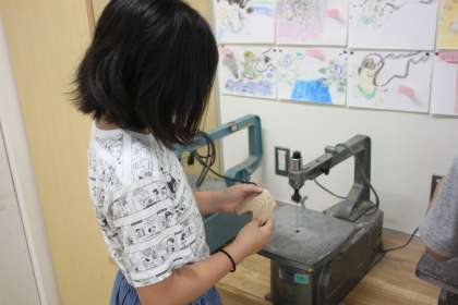 5年生が図工の時間に、電動ジグソーを使った木工に取り組んでいます。