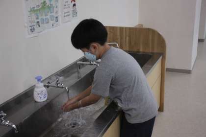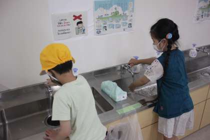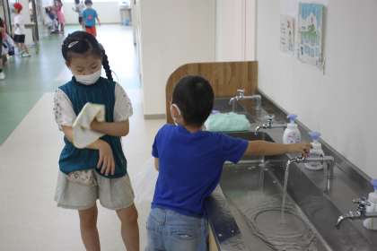 夏休みが目前まで迫っていますが、若小では気を抜かず、しっかりと手洗いを励行しています。