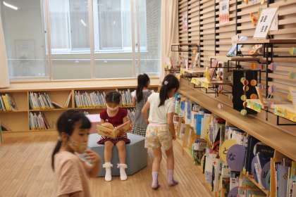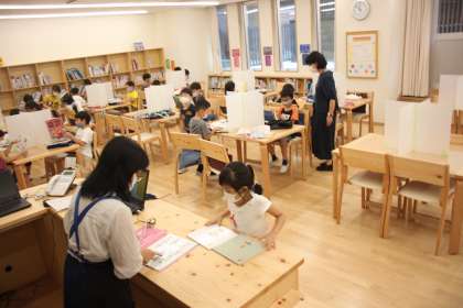 司書の先生の読み聞かせを楽しんだ後は、読書をしたり、借りたい本を選んだりして、思い思いに過ごします。