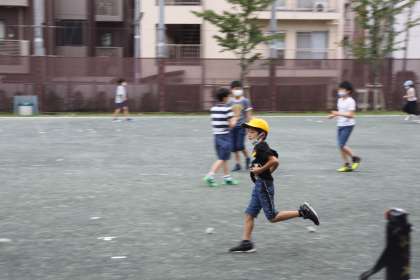 若小では万が一のためにも、休み時間の校庭遊びも原則、全員マスクをすることになっています。