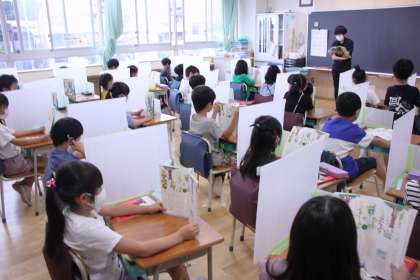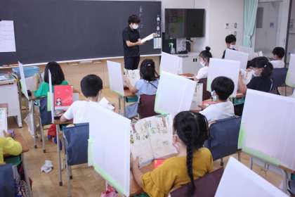 残念ながら新型コロナウイルス感染症対策で、大きな声を出せませんが、みんなで読んで国語の学習を締めくくりました。