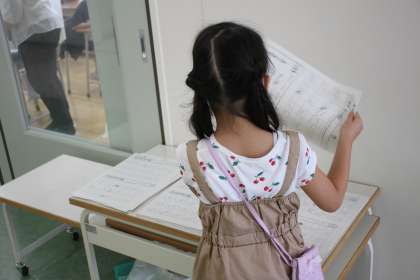 先生が用意しておいたたくさんのプリントを使って、自分のペースで学習をします。