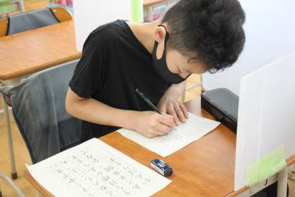 お手本をよ〜くみて、一筆ひと筆、じっくりとていねいに書き進めます。