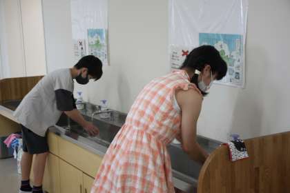 登校後以外にも、休憩時間、図書室に行く前等、何度も手洗いをすることになります。