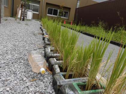 夏の日差しを受けて育っている5年生の稲は、夕立を受けて嬉しそうです。