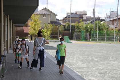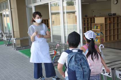 夏の空になった今朝の若小に、次々に子どもたちが登校してきてくれます。