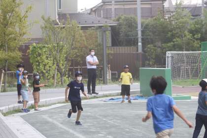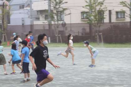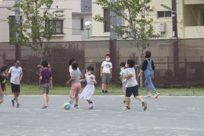 校庭にはたくさんの子どもたちが出て、元気いっぱいに遊んでいます。