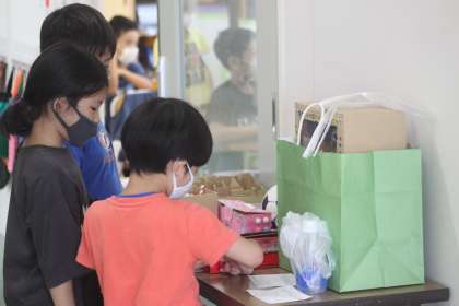 各教室の前には、既に自由研究作品の数々が展示されています。