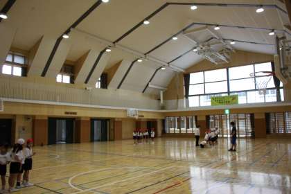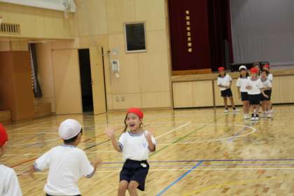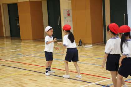 1年生が体育館で体育の学習をしています。