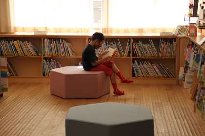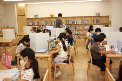いごこちのよい図書室で、2年生たちが読書をしています。
