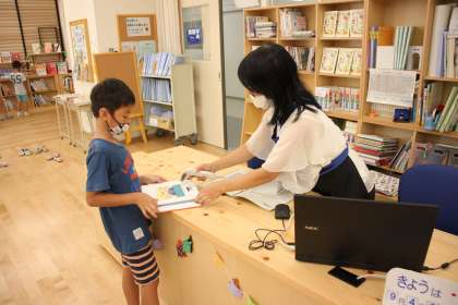 若小新名物の図書室は、広く、明るく、開放的!