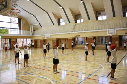 涼しい体育館ですが、しっかり汗をかいた5年生のラジオ体操第一でありました。
