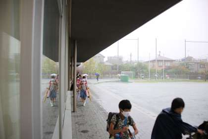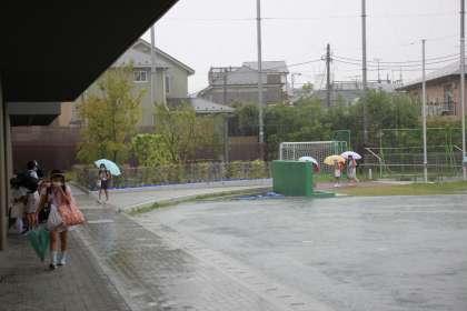 登校時刻に降りが強くなってしまった雨。