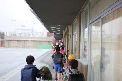 雨の日も子どもに優しい若小です。