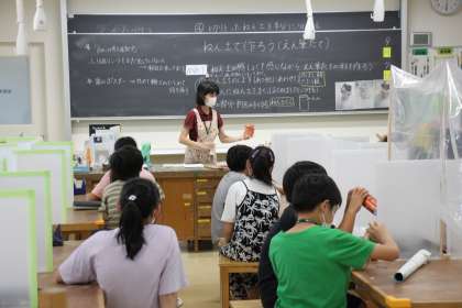 若小新校舎名物の陶芸窯で、素敵なペン立てをつくろう!