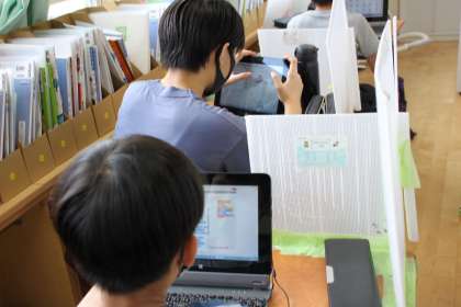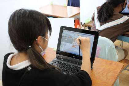 5年生が総合的が学習の一環で、プログラミングソフトを使っています。