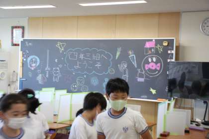 みんなで「ようこそ若小へ!」のメッセージが伝えられたようですね。
