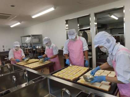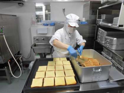 写真ははちみつバタートーストを作っているところです。