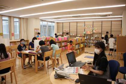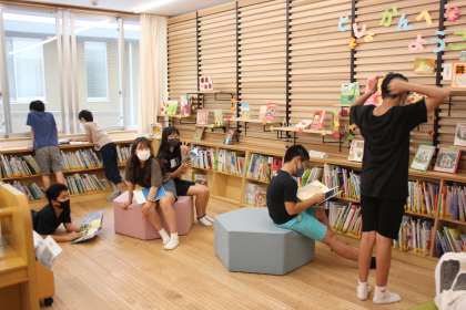 若小名物の広く明るい図書室。