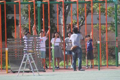 若小新校舎のお気に入りの場所を選んで撮影します。