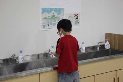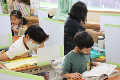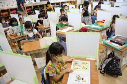 登校してきた1年生は、まず手を洗い、早速読書に入りました。