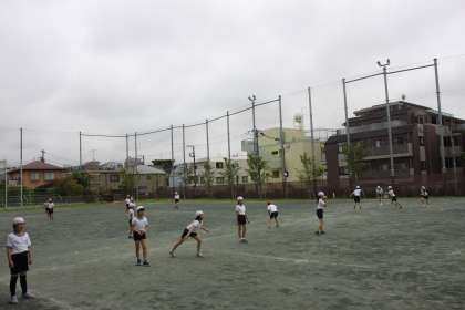 4年生が校庭で体育の学習をしています。