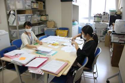 今日はPTA本部役員の皆さんたちが、PTAからの配布物の準備をしてくださっていました。