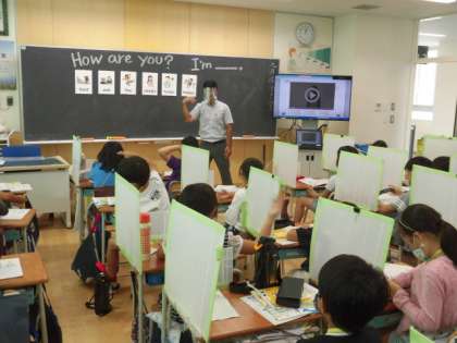 本日の外国語は、キー先生が来てくれました。体調の様子を楽しいゲームと一緒にみんな大盛り上がり!