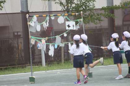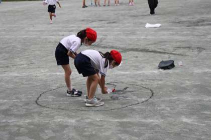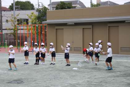 おうちで用意してもらった容器に水を入れて、とても楽しく遊びます。