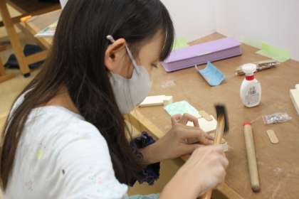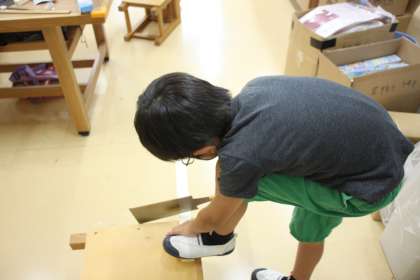 のこぎり、やすり、かなづちを駆使して、木を切り、整え、組み合わせます。
