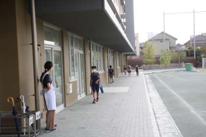 先生たちも決意を込めて、子どもたちを迎え入れます。