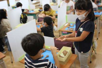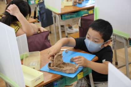 今日は大小さまざまなサイズの粘土玉をつくって、それらを組み合わせて作品にしあげていきます。